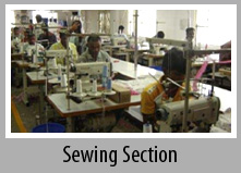 We have a unit with total machineries capacity of 40 nos. Production output per month is about 25000 pcs. To optimize our quality standards, computerized pattern (CAD), layer cutting, needle detectors, vacuum steam iron, stain remover etc., are used.